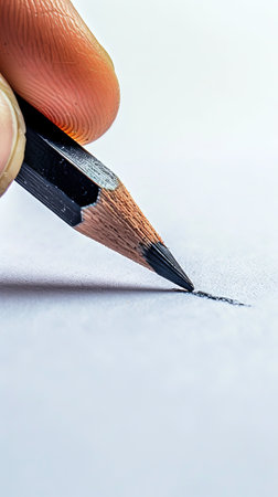 Close-up of a sharp pencil drawing a precise black line across a clean white sheet of paper