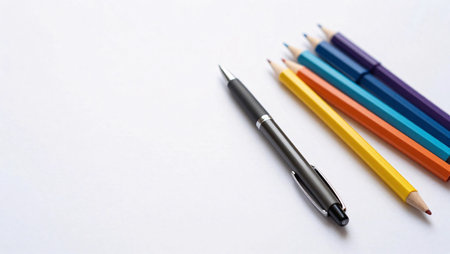 Black pencil on blue paper. Simple setup for drawing or school themes, perfect for art or education designs. Ideal for creative or minimalist visuals.