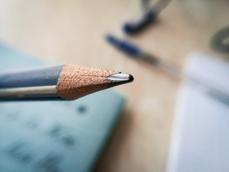 Close up of pencil writing on paper. Macro with extremely shallow depth of field
