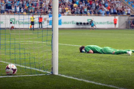 DNIPROPETROVSK, UKRAINE - MAY 18: FC Metallurg D goalkeeper Yuri Pankiv in action during soccer match vs FC Dnipro on May 18, 2014 in Dnipropetrovsk, Ukraine