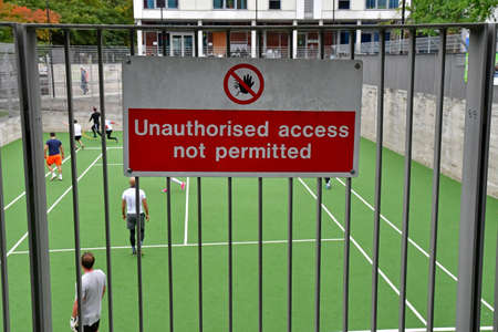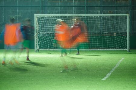 Street football outdoor game on an artificial astroturf vibrant lawn, soccer game on a pitch field with a team in a background