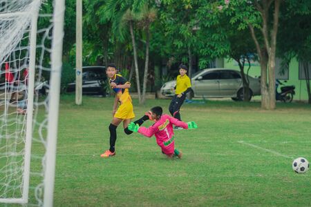 KANCHANABURI THAILAND - JULY 20 : Training and football match between youth soccer teams on July 20,2018 at Nongthabong School in Kanchanaburi, Thailand