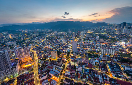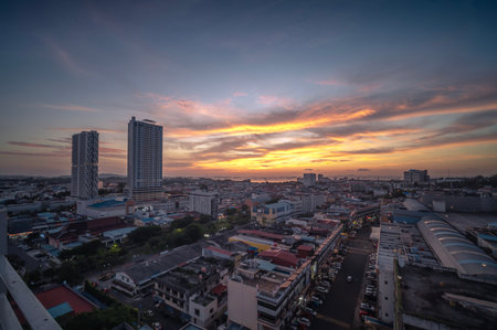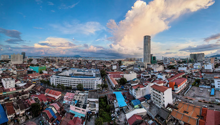 Georgetown, Penang/Malaysia - Jun 30 2017: Gold sunset over Penang Georgetown.