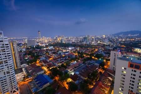 Top view of Georgetown, view from Penang hill, capital of Penang Island, MALAYSIA.
