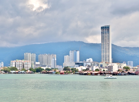 George Town City high rise building view with mountain and sea, Penang Malaysia