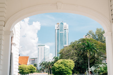 Penang, Malaysia - July 6, 2023 : View of Georgetown street from Church of the Assumption