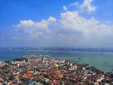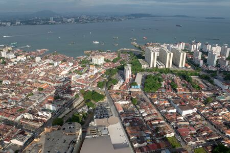Penang, Malaysia - Mar 11, 2016. Aerial view of George Town with the bay in Penang, Malaysia. Penang is one of the most urbanised and economically important states in Malaysia.