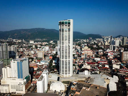 Georgetown, Penang/Malaysia - Feb 29 2020: Aerial view KOMTAR with Georgetown city.