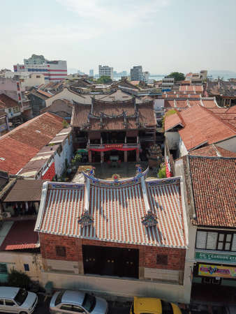 Georgetown, Penang/Malaysia - Mar 17 2020: Aerial view structure temple of Poh Hock Seah Twa Peh Kong Temple