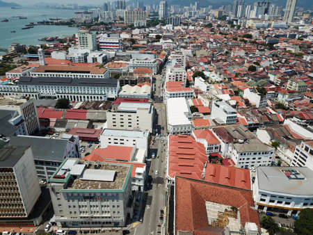 Georgetown, Penang/Malaysia - Sep 06 2018: Aerial view Georgetown old Heritage Building