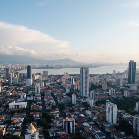 Aerial view of Penang cityscape on cloudy day