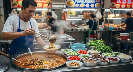Chef cooking noodle at street food market in Bangkok, Thailand