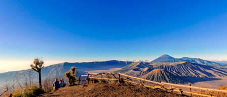 Travelers relax and enjoy the morning scenery at Mount Bromo. Located in Bromo, Tengger, Semeru National Park, East Java, Indonesia.