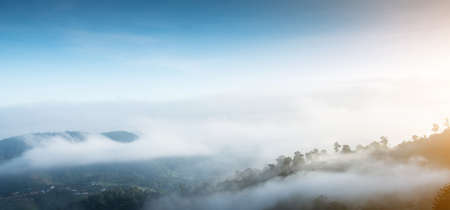 Fog and sunrise on the top of Phutog Moutain,Chiang Khan,Thailand.