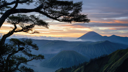 View on indonesian landscape at sunrise around Mount Bromo