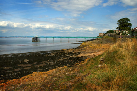 Clevedon pier. A Victorian pier against backdrop of Welsh cost.