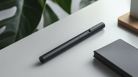 Sleek pen casting shadow on a polished desk, focused work. Ideal for office and productivity-themed content. AI Generated.