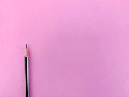 Copy space of one black color pencil with sharp lead isolated on pink background