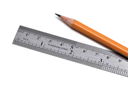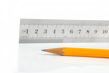 steel ruler and wood pencil on white