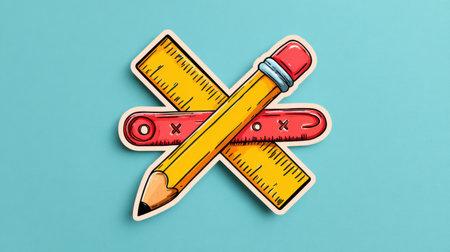 Bright yellow pencil and red ruler intersect against a vibrant blue backdrop, showing creativity and tools for learning, ideal for educational themes.