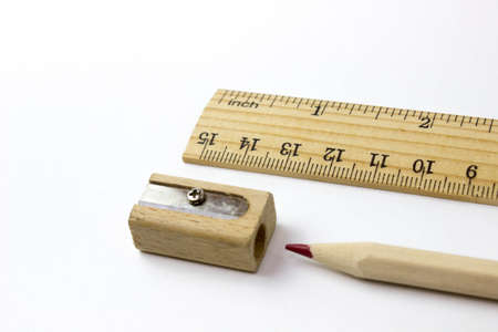Wood ruler, pencil and pencil sharpener. Free royalty images.