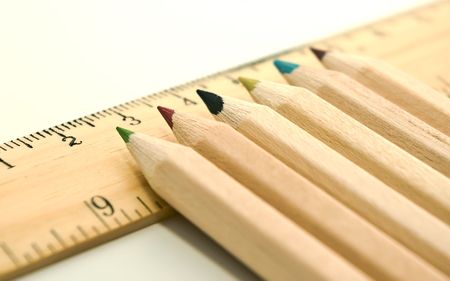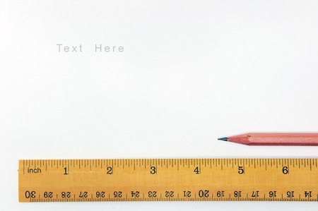 closeup ruler and wood pencil on white