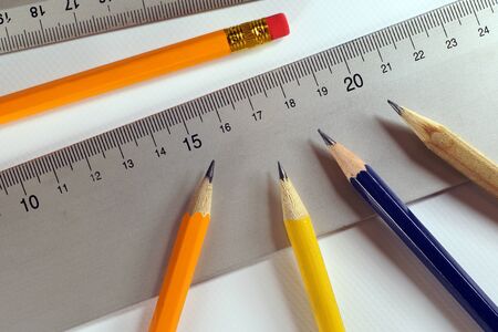 Sharpened pencils, prepared rulers for drawing. Preparation to work.