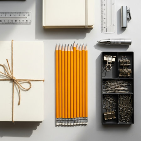 A collection of yellow pencils neatly placed in a clear case on a light background. Ideal for projects related to education, office supplies, and creative tools.