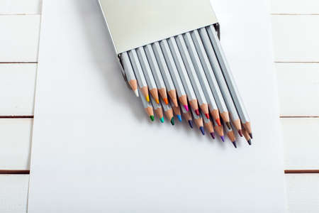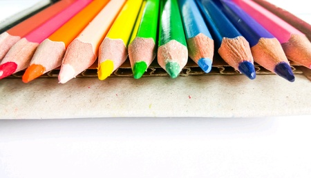 Set of colored pencils. Colored pencils for drawing different colors on a light background.