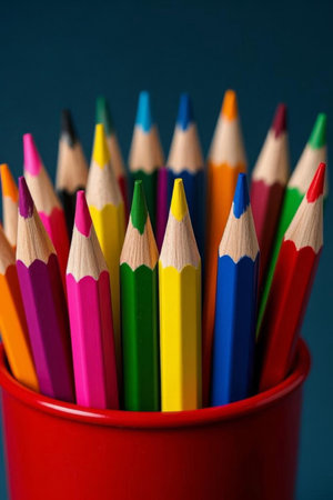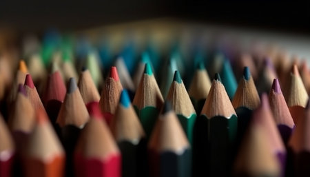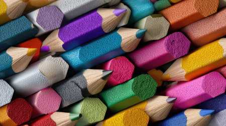 A vibrant collection of assorted colored pencils arranged in a captivating pattern. Perfect for art enthusiasts, educators, and creative projects.