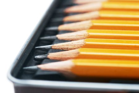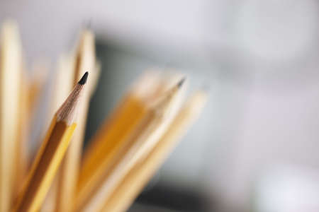 Abstract background of pencils with extremely shallow dof. Selective focus limited to front pencil