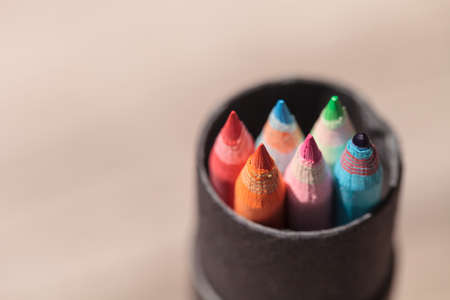 Close-up of a bunch of colored pencils, abstract background with colored pencils macro view