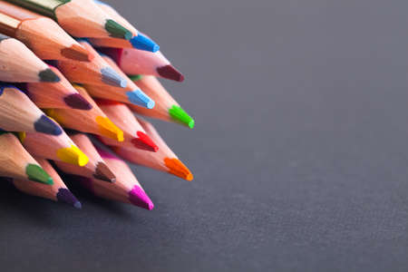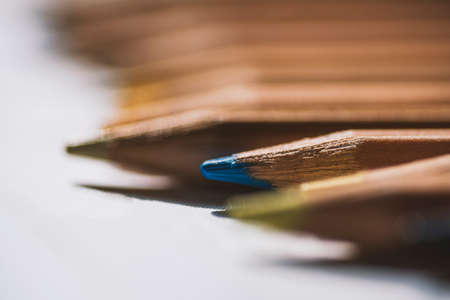 Colored pencils close up. Macro shooting. A tool for drawing and creativity for children and adults. Drawing with colored pencils