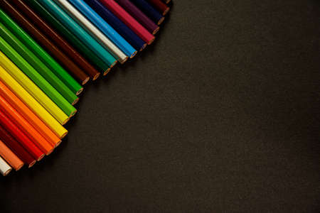 Pattern of Colorful Many colored pencils on a black background and copy space