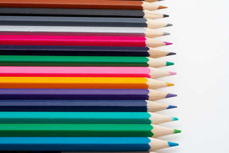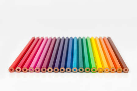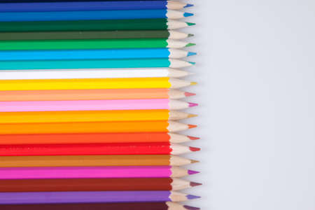 Colorful colored pencils placed on a white background