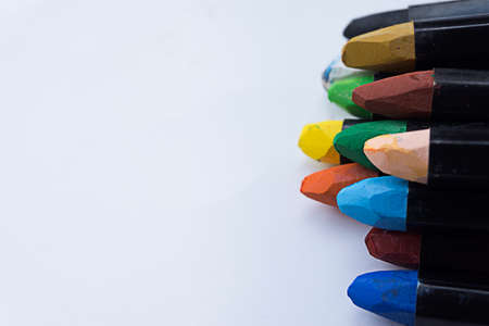 Colorful crayons on a white background, close-up