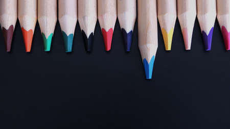 Close up macro shot of color pencil pile pencil nibs on dark background | Stand out from others