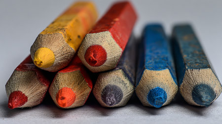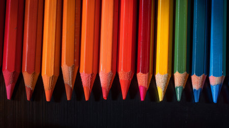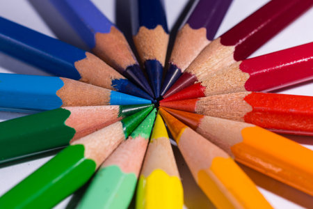Bunch of colored pencils are showing their sharpened tips, creating a colorful and vibrant design