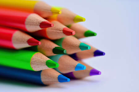 Colored pencils isolated on white background close up