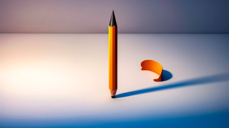 Pencil is casting shadow on white surface with blue background. Generative AI.