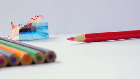 Red pencils on a white background. Office, drawing.