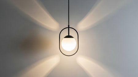A minimalist pendant light creates enchanting shadows in a modern interior space.