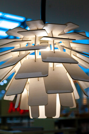 close up of lamp at modern restaurant