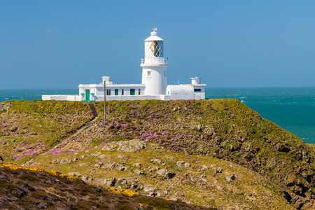 A lighthouse on South Stack, an island situated just off Holy Island on the northwest coast of Anglesey in Wales, UK