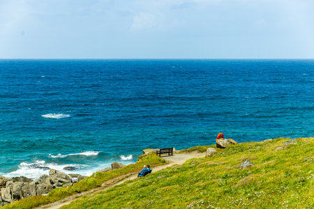 Landscape of the Lands End - the most westerly point of England which is a popular tourist attraction, Penwith peninsula, Penzance, Cornwall