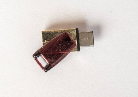Flash drive disassembled without a plastic case on a white background. Circuit board inside usb drive. Mogilev. Belarus June, 2 2021.