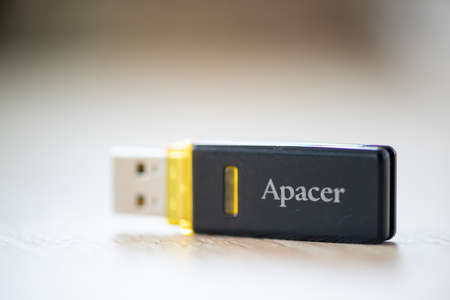 Timisoara, Romania - January 12, 2019: Close-up of an Apacer USB stick, flash pen.