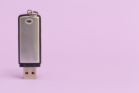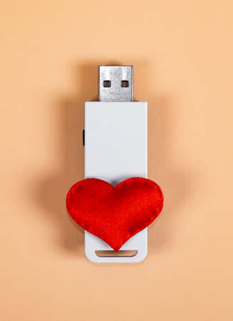 USB Flash Drive with a Heart Shape on the Paper Background closeup