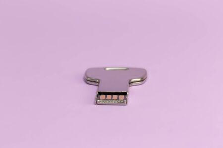 Usb cable connector on a black laptop keyboard close up. Toned image.