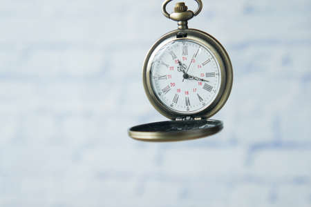 Hypnotism concept, gold pocket watch swinging used in hypnosis treatment